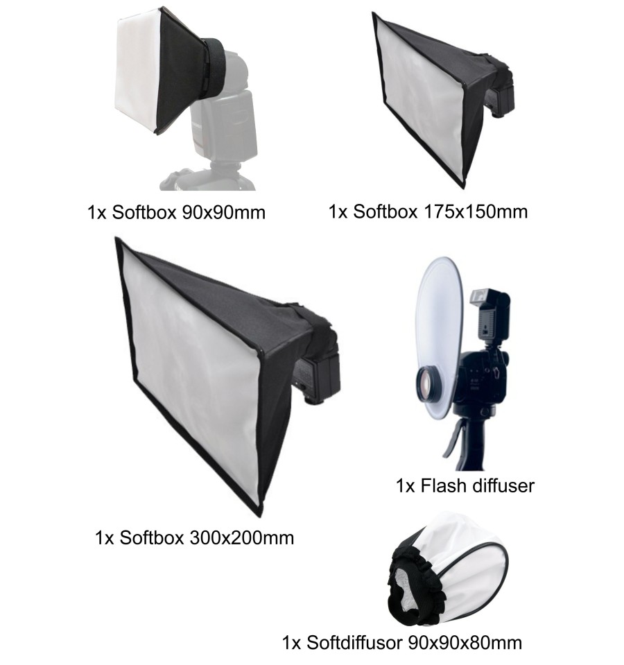 Kit comprenant des boîtes à lumière et des diffuseurs universels pour pour flashs cobra